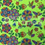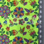 This fabric is printed with a design of beaded hummingbirds and flowers with ten different background color options.